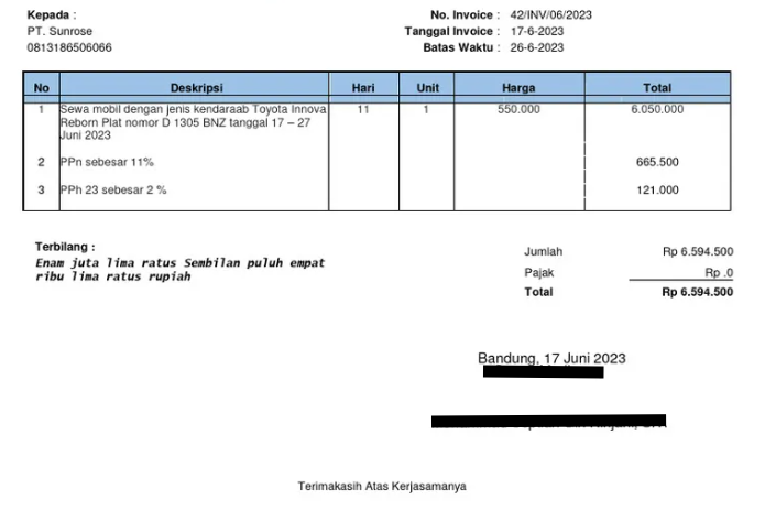 Komponen Wajib dalam Invoice Rental Mobil
